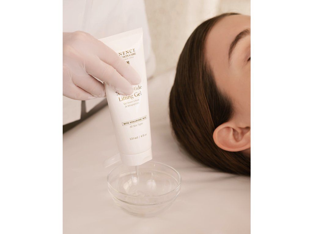 Zpevněte pleť s tímto hydratačním gelem s kyselinou hyaluronovou a tetrapeptidy vhodným pro profi přístrojové ošetření i domácí použití.