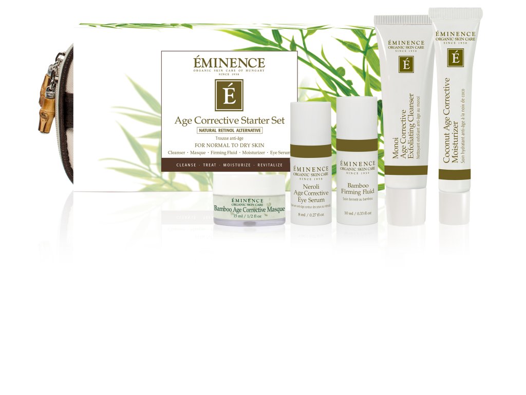 Sada obsahuje velkorysou měsíční zásobu pěti omlazujících přípravků Éminence Organics. Nabízí vše co je potřebné pro péči o pleť na cestách nebo poslouží jako způsob jak vyzkoušet několik nových produktů najednou. Vhodná pro suchou pokožku.
